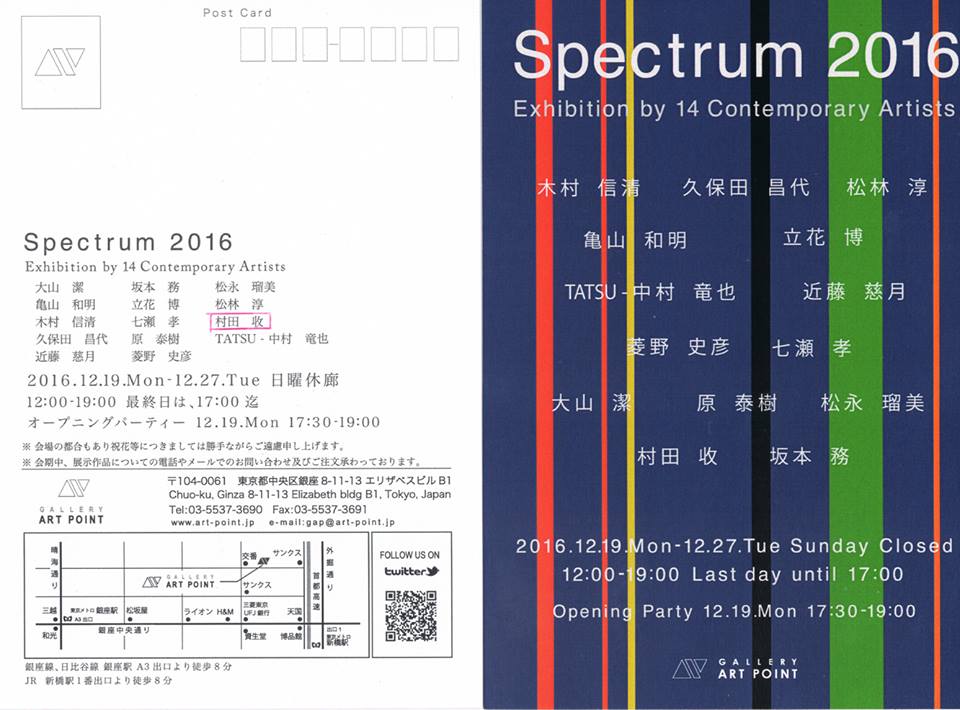 会期:2016.12月19日(月)~ 27日(火)※但し25日(日曜日)は休み。時間:12:00~19:00 最終日は17:00まで