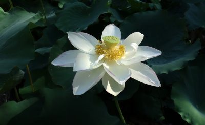 ハスの花の写真を撮っていたら、バラッバラとかなり大きな音が響きました。見ると、ハスの花びらが散る瞬間ではないですか!
