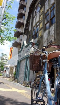 建物の構造は、木造3階建、寄棟造。スレート葺(一部鉄板葺)の屋根は3階部分で腰折風に処理されています。ドイツ壁風と白タイル張を組み合わせ垂直性を強調した正面の意匠とあいまって、市街地の歴史的景観の象徴となっている・・とのことです。なお、一階にはキリスト教系の本屋さんが入っていますが、別に宗教色のある建物というわけではありません。美味しい珈琲店も一階にはあります。
