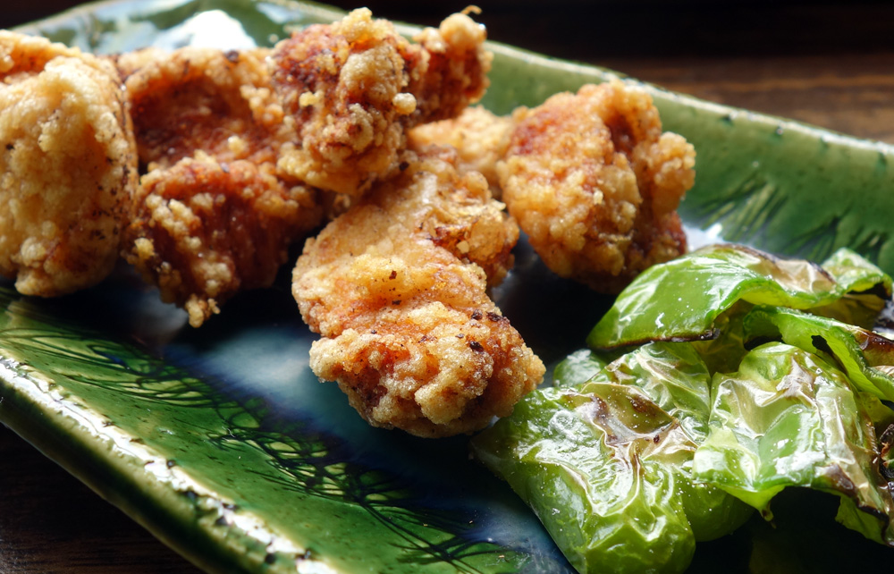 鳥の唐揚げは下味によく漬け込んで(4~5時間)味を沁み込ませてから片栗粉のみでカラッと揚げました。我が家では、下味に使うのは醤油&日本酒&土ショウガすりおろし&ごま油(少々)。鶏肉になじませたのち冷蔵庫で4~5時間置いた後、食品用のキッチンパックに片栗粉を入れその中へ漬け込んだ鶏肉を入れ、振りフリ&外から手でもみ込む….と簡単に手も汚さず揚げられますよ~♪ 熱いうちに塩パラパラだけでもいいですが、からし醤油に酢でも美味しい。
