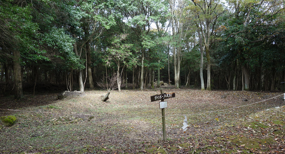 大きなお坊さん(ダイボー)の足跡と伝えられる窪地とか。ま、真上から見られるわけではないので、足跡に見えるかどうかは、びみょ~ですが、自然に出来た窪地ではなく何らかの目的で掘られたものらしい。
