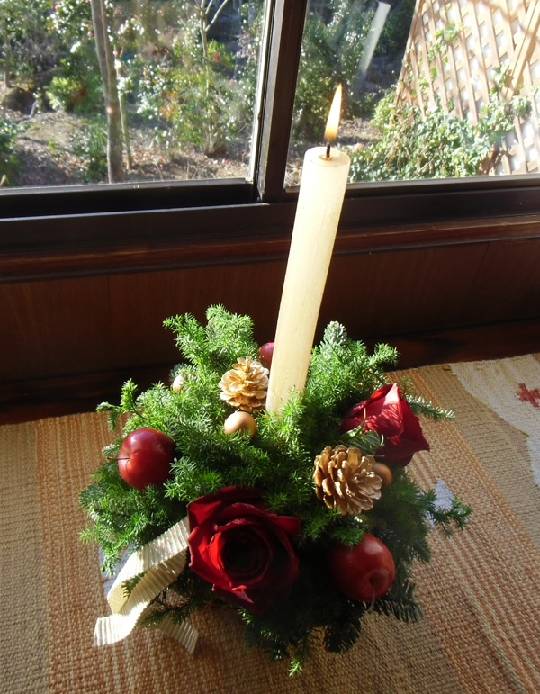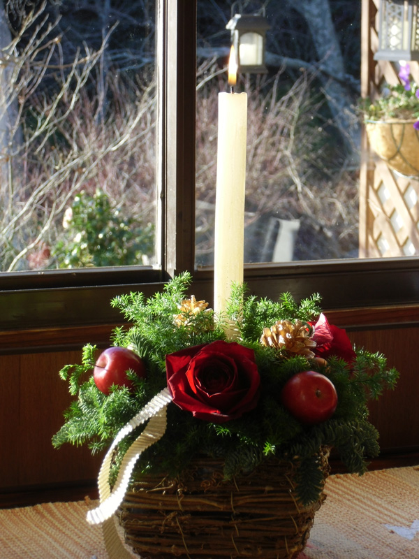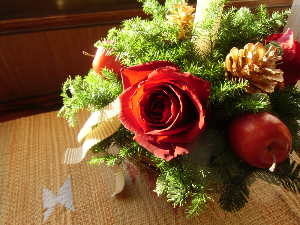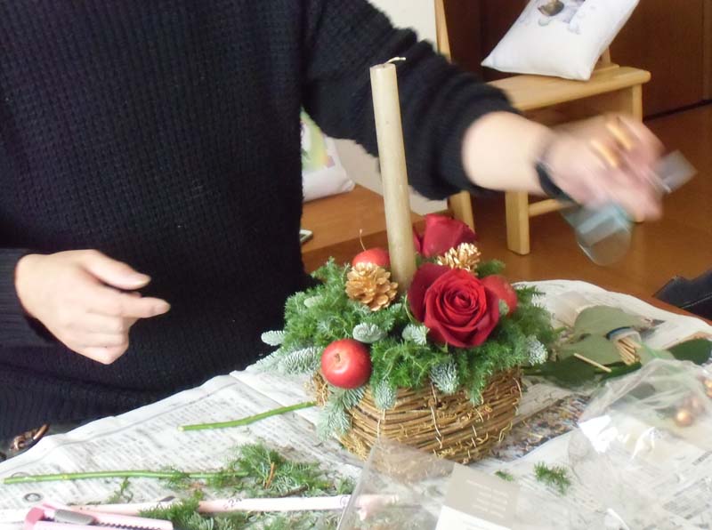 この日、自分で完成させたクリスマス用のフラワーアレンジを大事に胸に抱えて持ち帰りました。