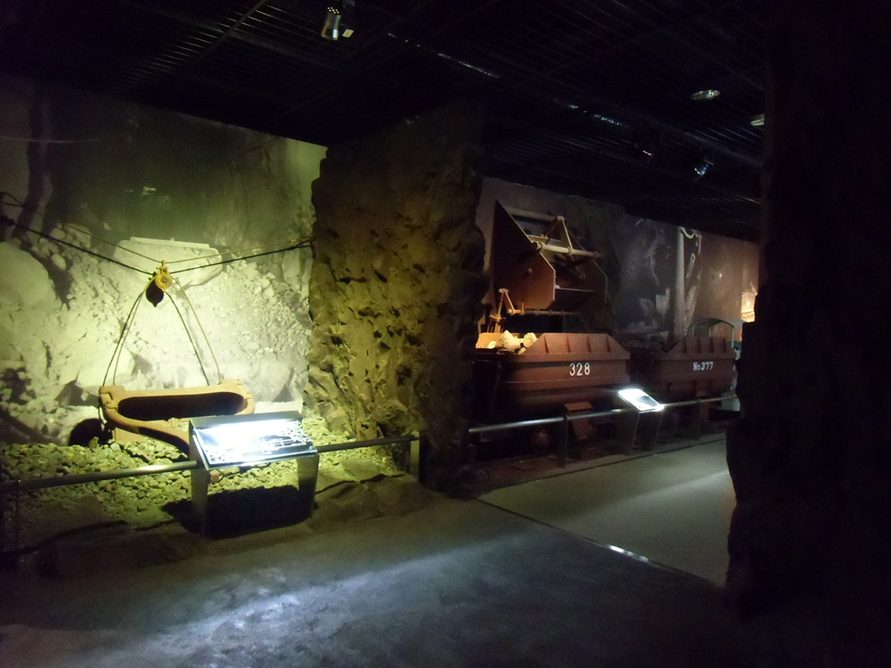 地下には坑道の様子も再現。当時使われていた道具の他、アリの巣のように何層にも張り巡らされていた、地下の様子を再現した立体模型は圧巻でした。