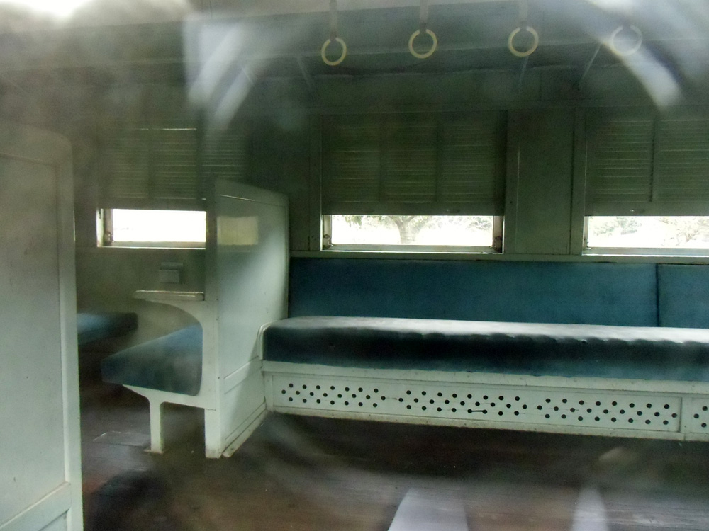 木のよろい戸付きでしょうか?窓ごしに撮った車両の中。