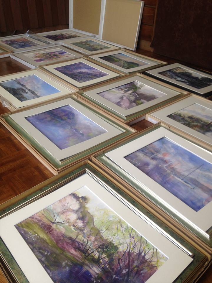 Selecting the frames and the mats are very complicated, but happy moment for the painter.
