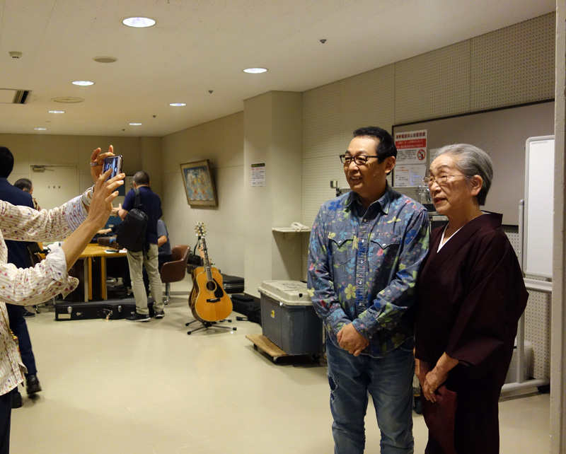 はじめてご対面の、さださんと村田香葉。うしろから支えているのは義理の妹(彼女も大のさだまさしファン)